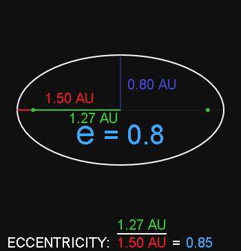 The example shows how the eccentricity is affected by ranging the semi-minor axis between 1.50 AU and 0.80 AU.